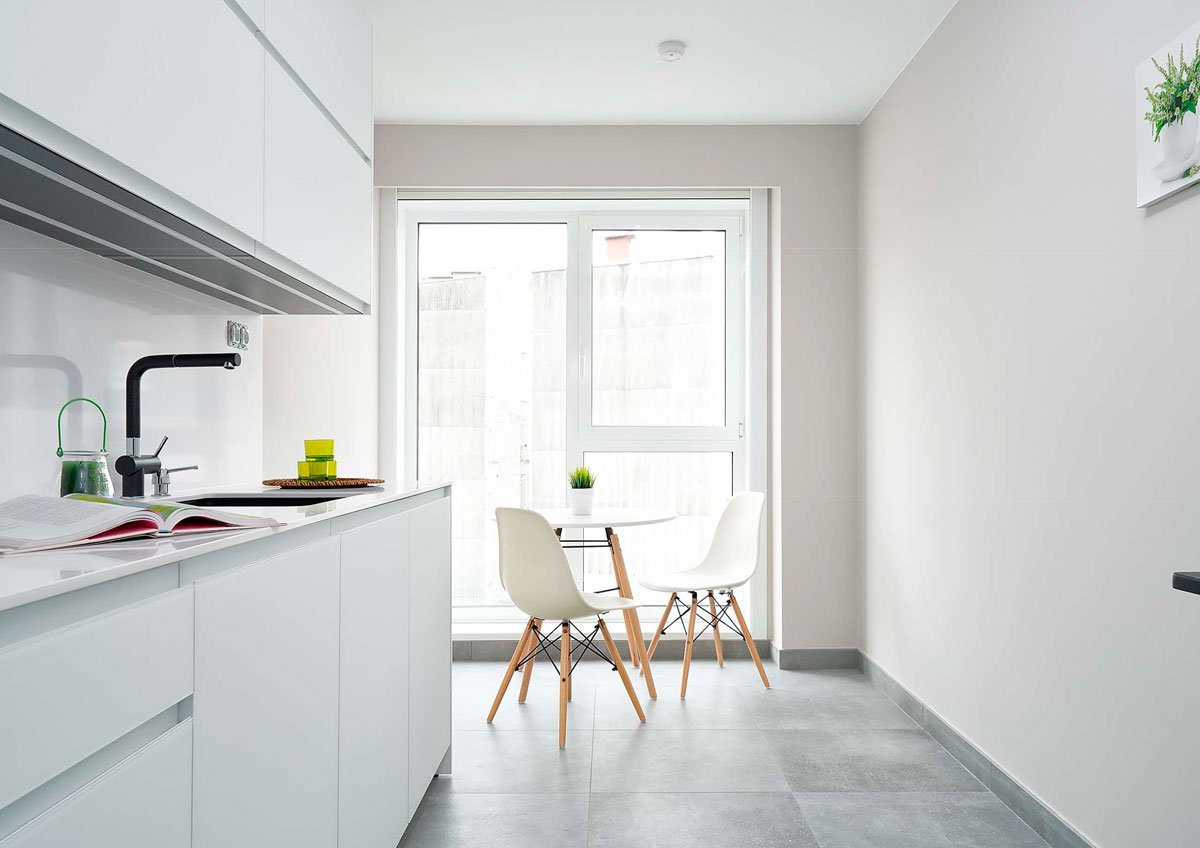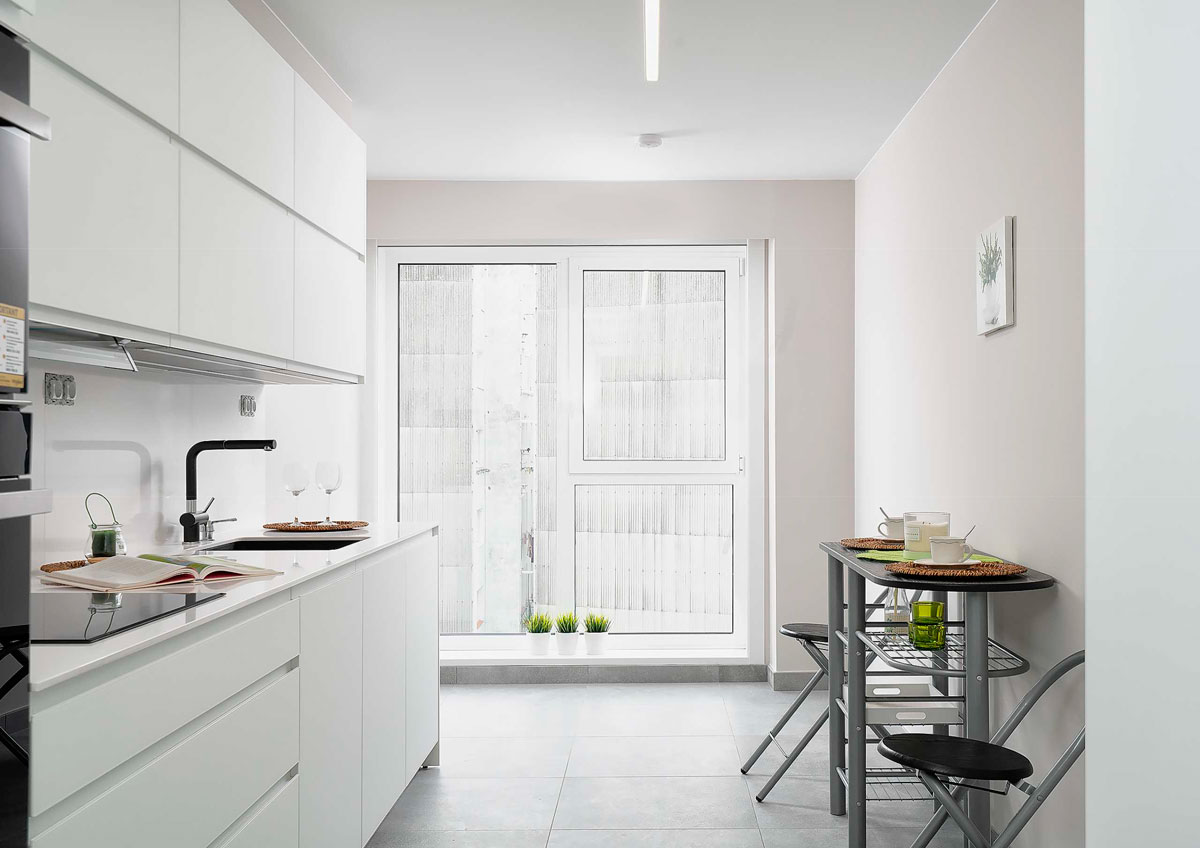 Una cocina con el blanco más puro, logrando un espacio fresco y actual.